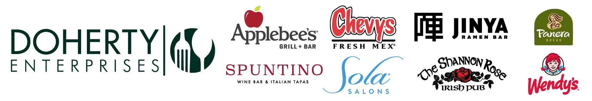 Established in 1985, Doherty Enterprises owns and operates more than 160 restaurants in New Jersey & New York, including seven restaurant concepts: Applebee’s Neighborhood Grill & Bar, Panera Bread, Chevys Fresh Mex, JINYA Ramen Bar, Wendy's, and its own concepts, The Shannon Rose Irish Pub and Spuntino Wine Bar & Italian Tapas.