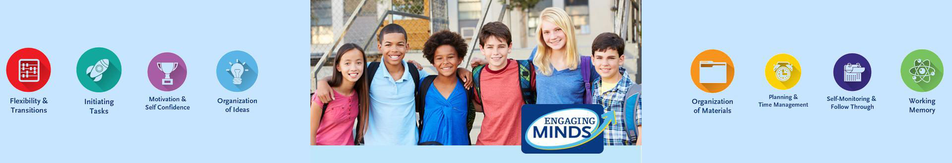 At Engaging Minds, we empower students to become confident, motivated, and independent learners by teaching essential executive function, critical thinking, and problem-solving skills.